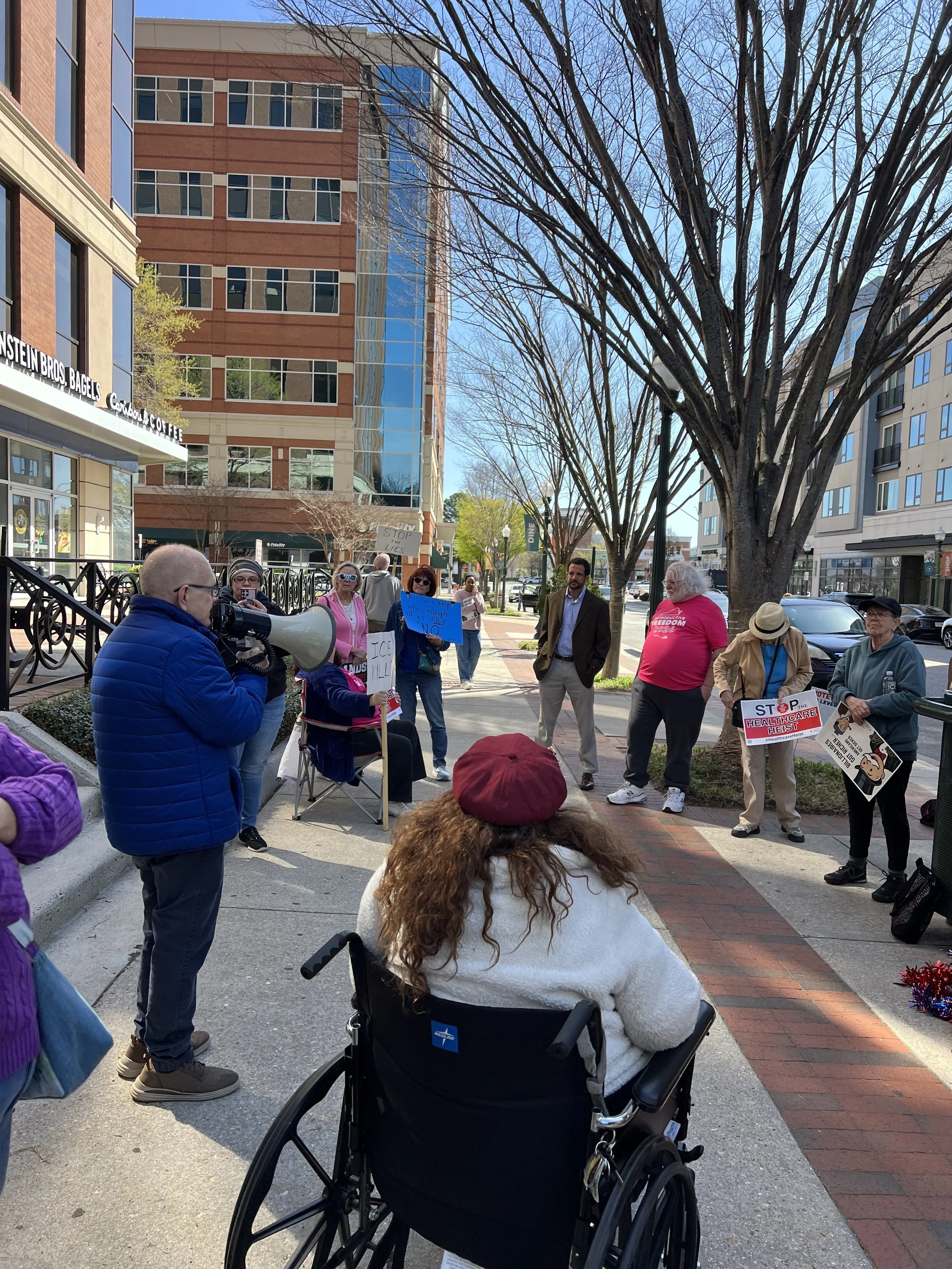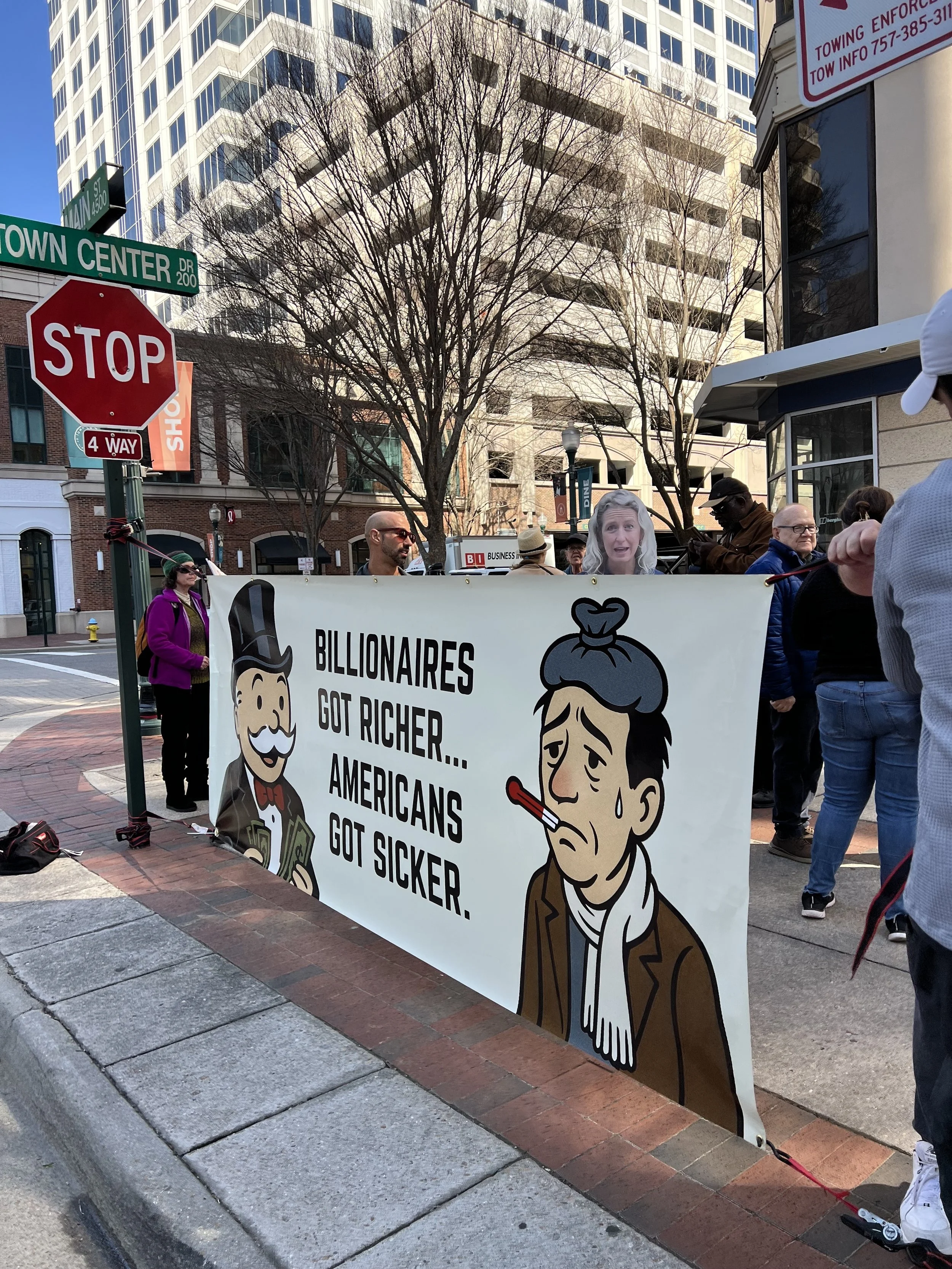 “I was born with a hip condition that I have struggled with my entire life. Before the Affordable Care Act, that meant I could be denied insurance because of a pre-existing condition. The ACA meant that I couldn’t be charged more for insurance, or turned away altogether,” said Becky, resident of Virginia Beach. “I just turned 57, I spent the first 40 years of my life unsure whether I would be able to afford a doctor – that’s how new getting rid of pre-existing conditions is. She has stated before that she would like to get rid of the ACA altogether, and today we gathered to tell her to stop slashing our health care.”